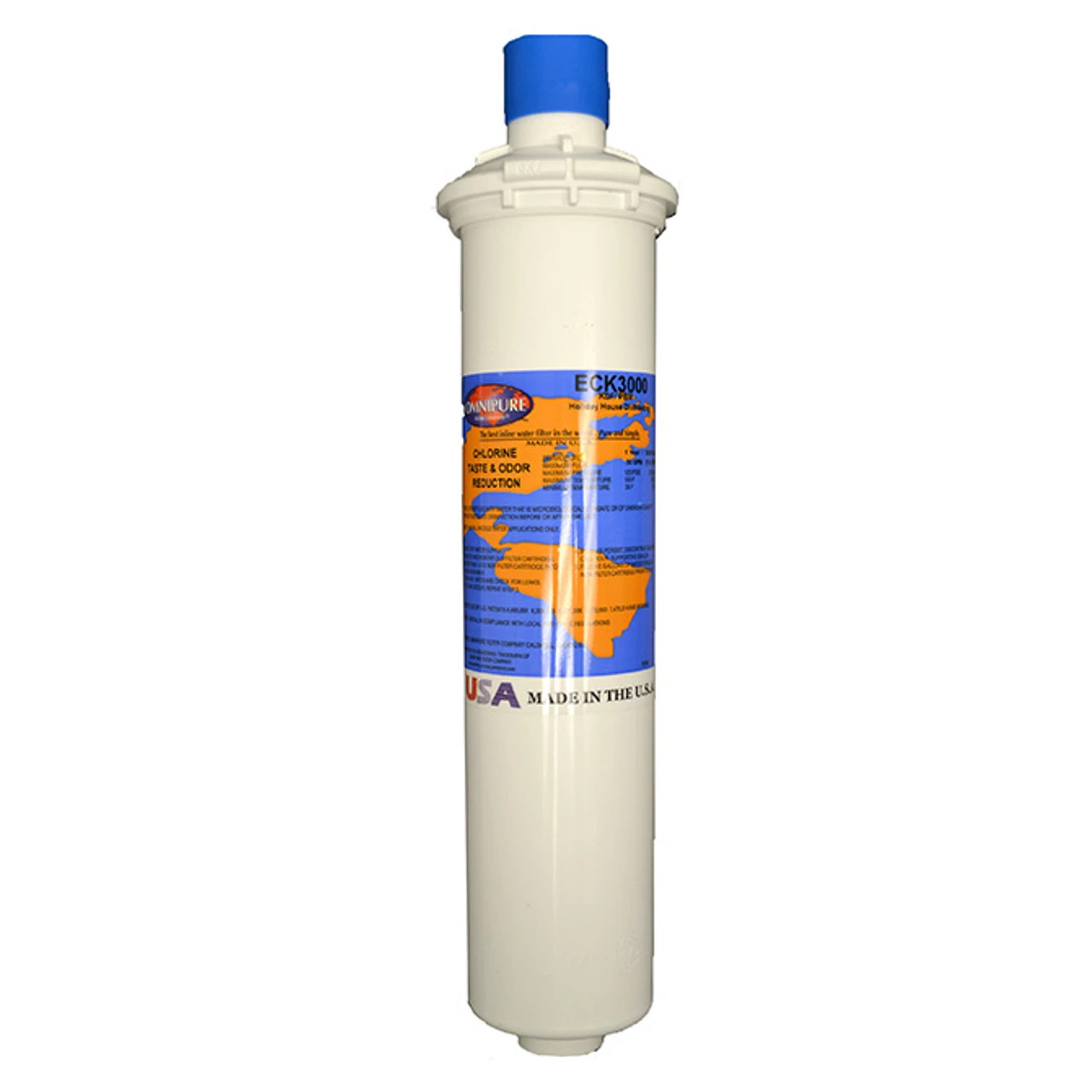 - The Omnipure ECK3000 water filter is a 5 micron carbon block that protects against taste, odor, chlorine, lead, scale and KDF.