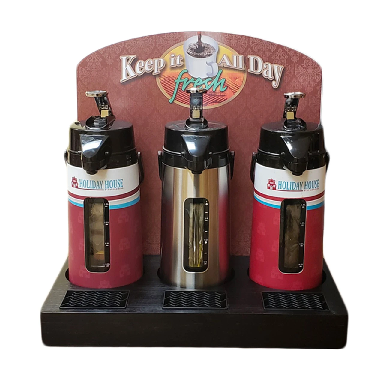 - Will hold any airpot up to 6 1/4″ Diameter, airpots and signage not included.