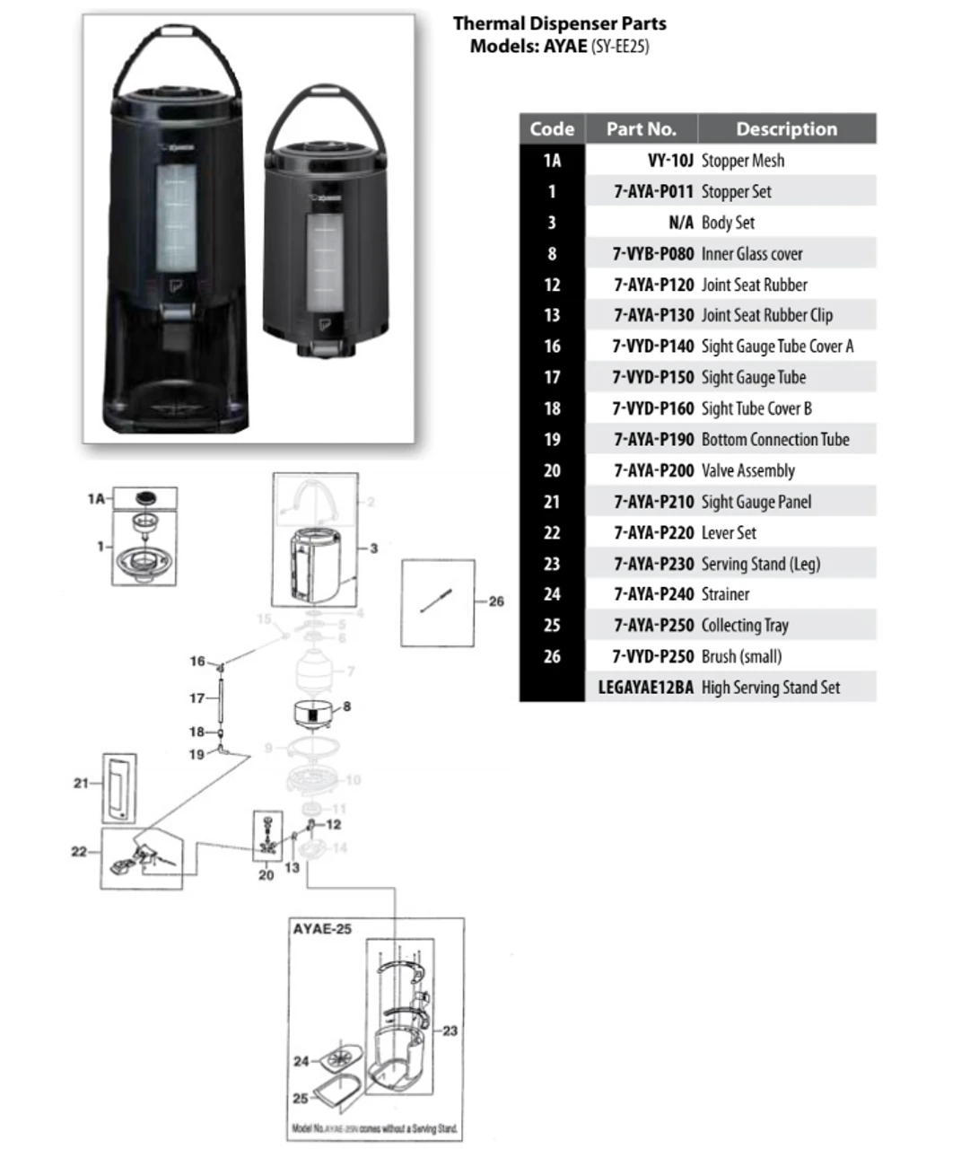 - Lid assembly for AYAE/SYAA thermal dispensers.